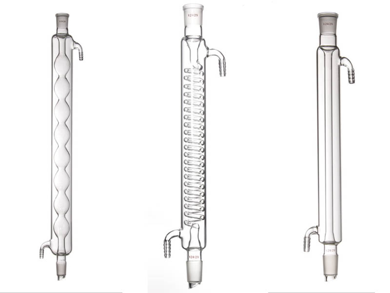 用于蒸餾液體或有機制備中,起冷凝或回流作用。回流裝置和蒸餾是兩個經常用到冷凝管的實驗裝置。